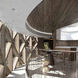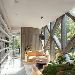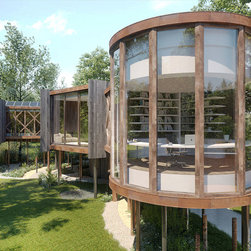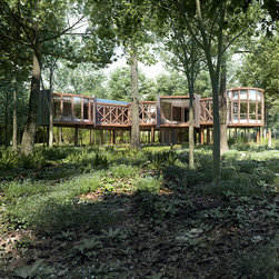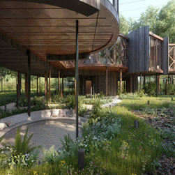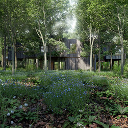 Central to our scheme is a new raised dwelling, that maintains the visual penetration below, whilst providing a stunning, dramatic property nestled in the tree canopy above. Principal spaces provide panoramic views across a small glade, whilst north and east elevations offer framed views through dense woodland.