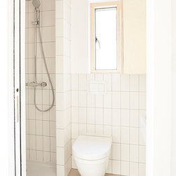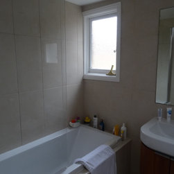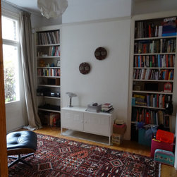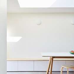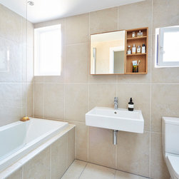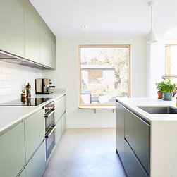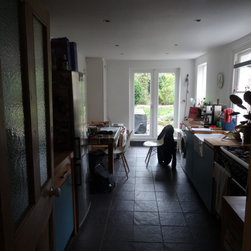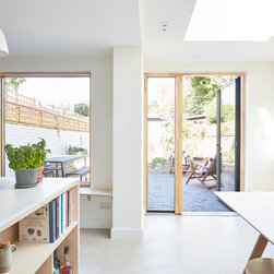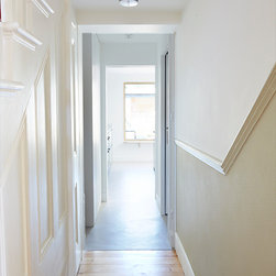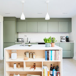 Our typical palette of materials and standard products are used throughout but are also complemented with some additional bespoke elements, including re-sprayed IKEA kitchen fronts, birch ply shelving & benches, together with a microscreed floor finish.