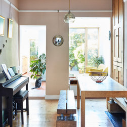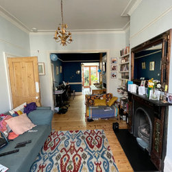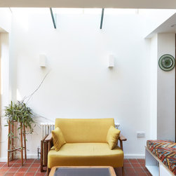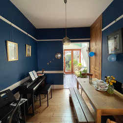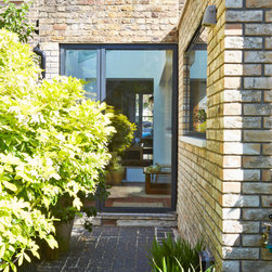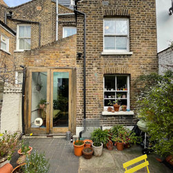 Ultimately a small rear extension was agreed upon, simply to create a longer and better apponted kitchen. Access points to the hall, rear reception/ dining room, side extension and garden were all then retained or added, together with extensive visual connection with the mature and characterfull rear garden.