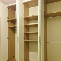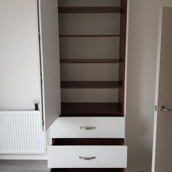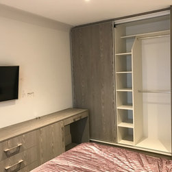 We did two Hinged doors wardrobes and one Sliding wardrobe. The material finishes are different: spray painted and plain wood.