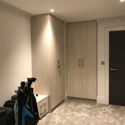 Having a bespoke walk-in wardrobe is one way to ensure that you have a space for everything and since it is bespoke, you can choose the design, and you get exactly what you want. The Bordolino oak wood doors and frame with light grey linen texture elements inside. We used a high quality German...