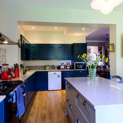 Vibrant colours in Shaker style kitchen