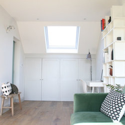 Light fills the space through the installation of a generous Velux window and double sashes on the opposite elevation.