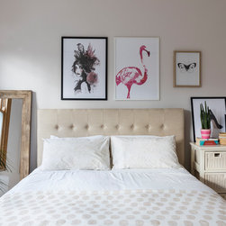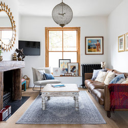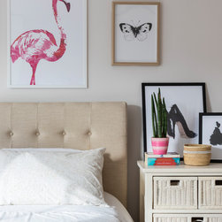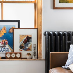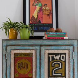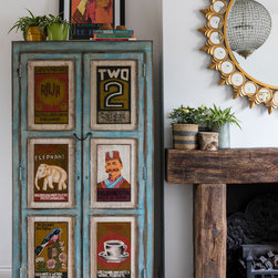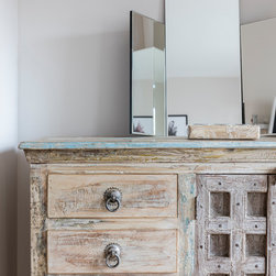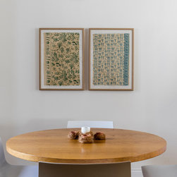 We added a sense of history by layering the walls with vintage art sourced from flea markets and then framed. In the dining room, hand block printed fabric imported from India was framed and hung to provide both colour and warmth to the space.