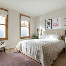The Master bedroom was given a more contemporary look that included touches of the clients heritage through modern artwork.