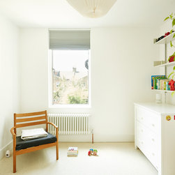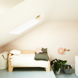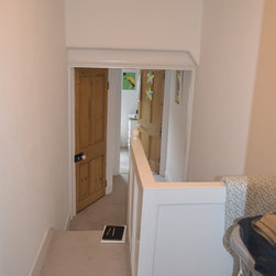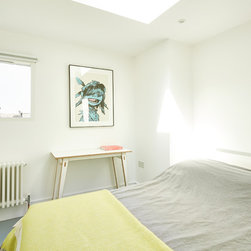 The ridge height of the existing house was too low to enable a straightforward attic conversion, and as such the ceilings to the rear bedroom and landing at 1st floor had to be dropped to provide the required head height over the stair. The ceilings were left as existing to the master bedroom to the front of the house, and this is reflected in a large step running the width of the new front attic bedroom. Whilst this provides a zone of lower head height, this zone works really well in a bedroom (particularly where the bed is positioned) and allows us to minimise the impact to the main formal bedroom in the house.