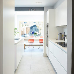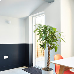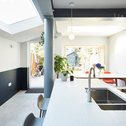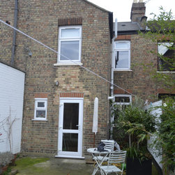 The planning department were fairly restrictive with regard to the permitted height along the neighbours flank, as such we had to create a lean-to side extension which joined, as seamlessly as possible, with a taller flat roofed rear extension.