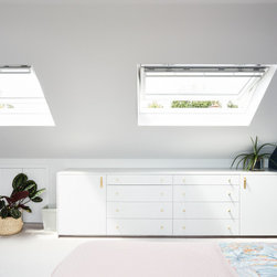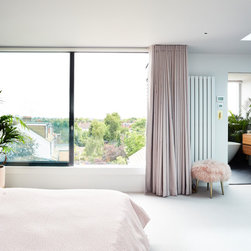 With a larger, traditional ridged roof, we were then able to configure the stair to work as a continuation of the existing first floor stair, and were afforded plenty of space to provide a generous main suite including dressing area and ensuite bathroom. We also provided large sliding glazed doors to the main dormer, with a discreet frameless internal glazed balustrade, to offer expansive and uninterrupted views from the bedroom.