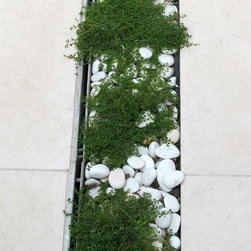 In the main garden the dining area was deliberately situated towards the end of the garden to encourage people to make a journey down to an area which was somewhat shady and had been unattractive in the past. It now feels lush, private and much more attractive. The dining area is visually divided from the first part of the garden by two peninsula planting beds with low specimen trees creating a soft barrier half down the garden which makes the garden seem larger. A series of planted rills further break the space up and soften the look of the garden. The planting is soft and lush, mainly shade tolerant using a limited palette of greens, limes and cream.