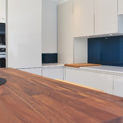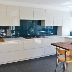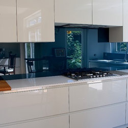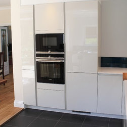 This contemporary kitchen was part of a ground floor refurbishment we designed and project managed. The utility room, kitchen and dining room were all redesigned. The wall was taken down between the kitchen and dining room to open up the space and make what was quite a dark small kitchen feel light and airy and much more usable.