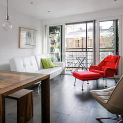 The proposal for the renovation of a small apartment on the third floor of a 1990s block in the hearth of Fitzrovia sets out to wipe out the original layout and update its configuration to suit the requirements of the new owner. The challenge was to incorporate an ambitious brief within the limited space of 48 sqm.