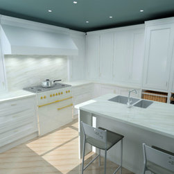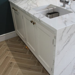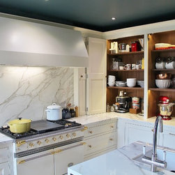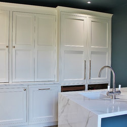 This bespoke kitchen was designed to maximise storage without detracting from valuable worktop space. The bifold dressers do this brilliantly offering full height storage without any loss of worktop space. Also you can slide worktop resting appliances and jars behind them instantly creating a clutter free space.