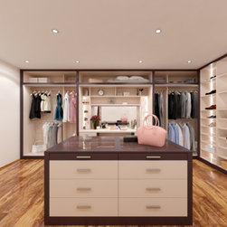 Wood Veneer Built in Walk in Wardrobe in Manhogany Style
