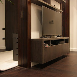 Custom made wardrobe and media unit fit floating shelving.