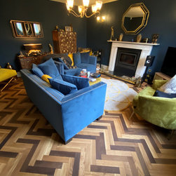 This project began as a referral from our Sister company Art of Clean who specialise in Wood Floor Restoration. The client had previously had Art of Clean sand and finish a lovely original timber floor in a bedroom, they then wanted to do the same in the landing and incorporate a Carpet runner. We installed a Victoria Wool Twist Carpet as runners for the hall, stairs, and landing. We then finished the stairs with Satin Brass Stair Rods. After getting to know us the client was also interested in having a wooden floor installed in their living room. During a visit to our showroom on Milton Road fell in love with the Rustic Mixed Smoked and Tumbled Oak Herringbone floor we have in on display. This was then installed and finished with Pallmann Magic Oil.