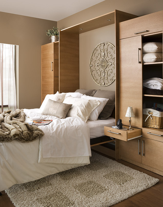 Pull-down beds are usually associated with sleek, contemporary interiors, but they can also work well if your style is more vintage or rustic, as this elegant design shows.