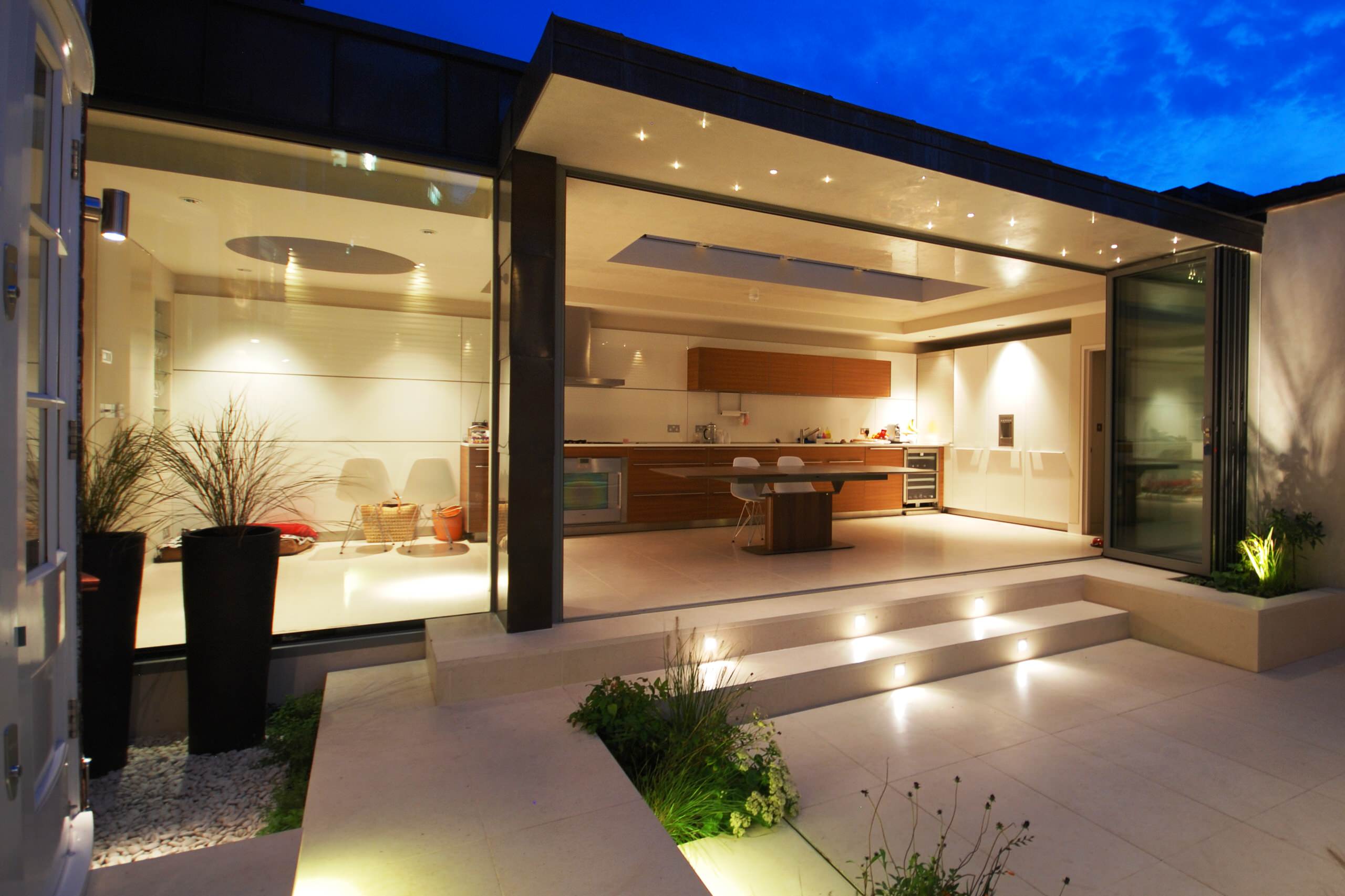 If your rear living space opens out to the garden like this one, consider connecting both spaces with lighting that is alike.