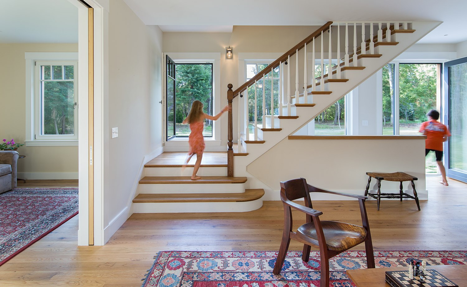 “For example, a [ground floor] room might serve as an everyday office or den, an occasional guest bedroom, and a future accessible bedroom for [when a resident can no longer manage stairs],” she says. “Similarly, an open living-dining area may be furnished for everyday use, but offer the flexibility to accommodate an expanded or additional table for larger gatherings.”