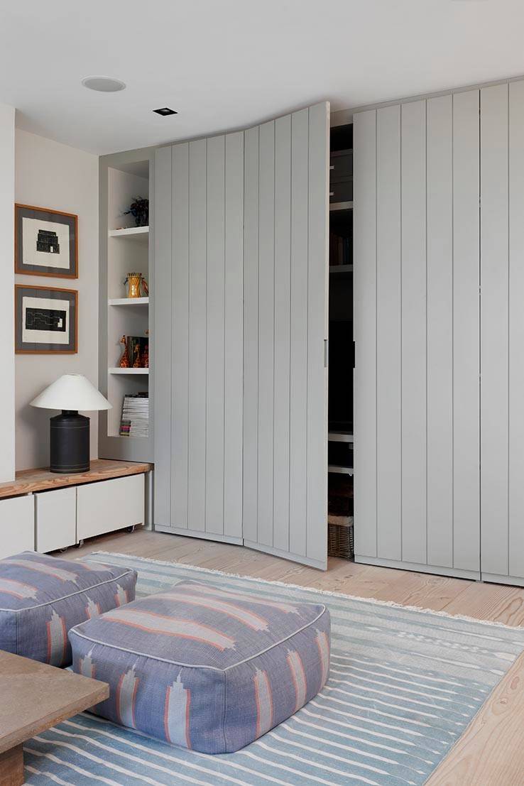 Floor-to-ceiling storage is much-used in bedrooms, but it works equally well in a living space. Using panels, tongue and groove or textured materials prevents the doors looking dull when shut…