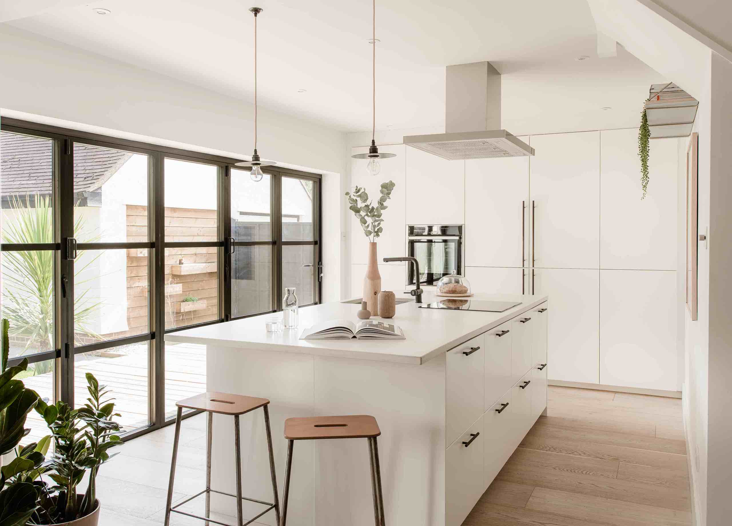 …has been transformed into a bright, far better laid-out space. The additional metre or so gained from losing the hall allowed Kate to install a large, storage-packed island and keep the back wall free for a run of glazed bifold doors. The washer-dryer was moved up into the family bathroom to keep laundry out of the open-plan room.