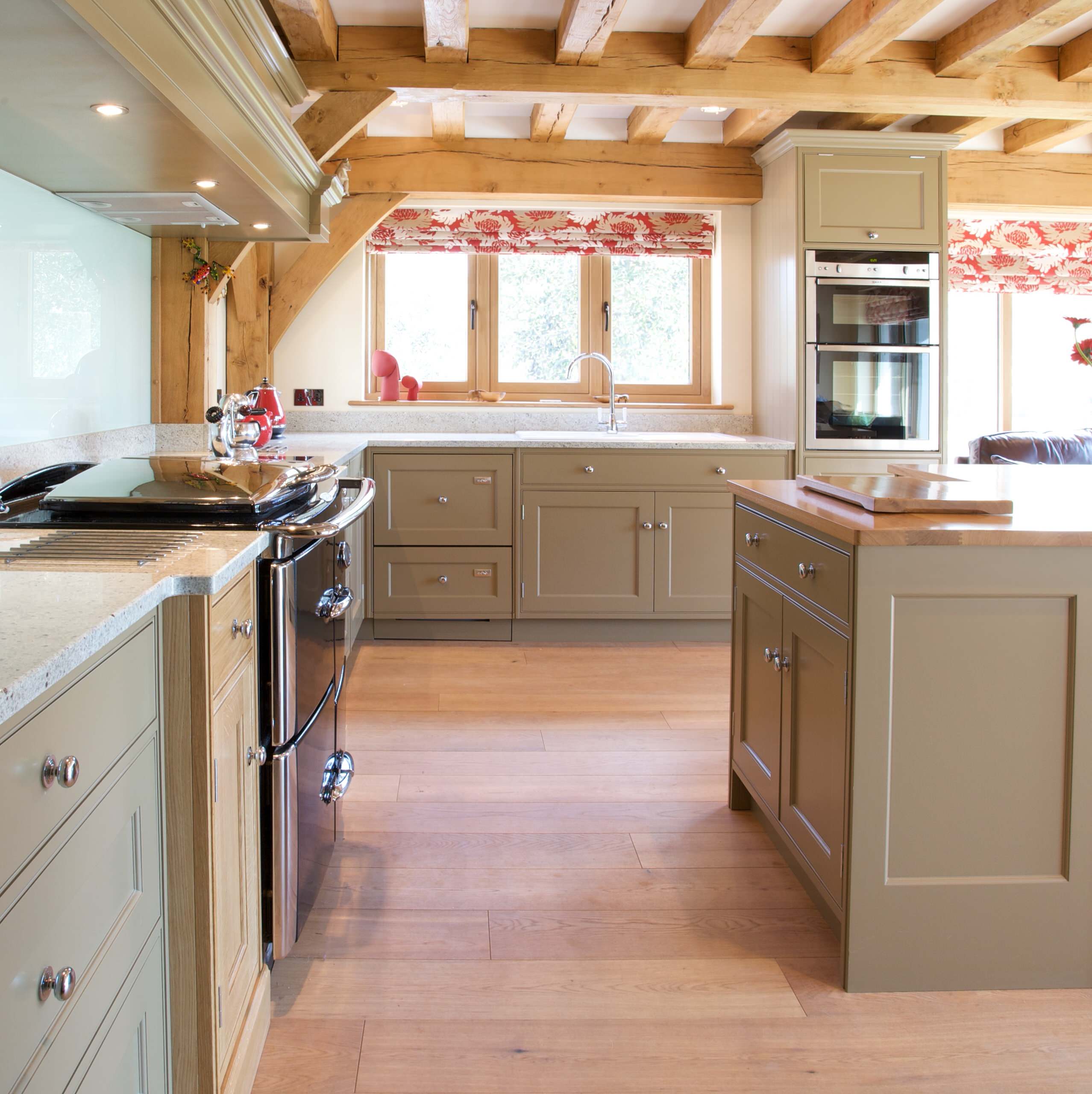 But beige needn’t be limited to wall colour. This kitchen oozes charm, and I think the beige-painted cabinets are a big part of why it’s so successful. There are quite a few wood finishes here, so the cabinets really beg to be a different finish. I think white cabinets would appear too modern; this light kiss of beige is the perfect choice.