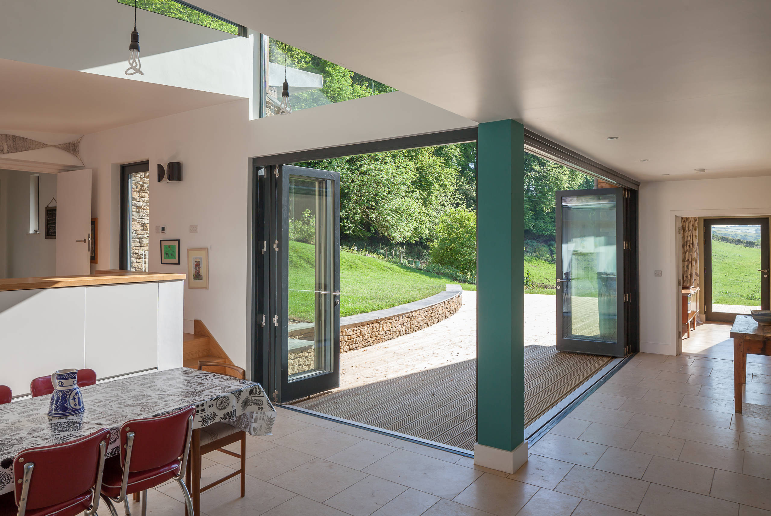 Bifold doors are a superb way to bring the outdoors in, helping exterior space function as an additional room that flows off the interior. They also work beautifully when closed, offering big views of the outside and pulling in lots of light, thanks to their full-height and width glazing.