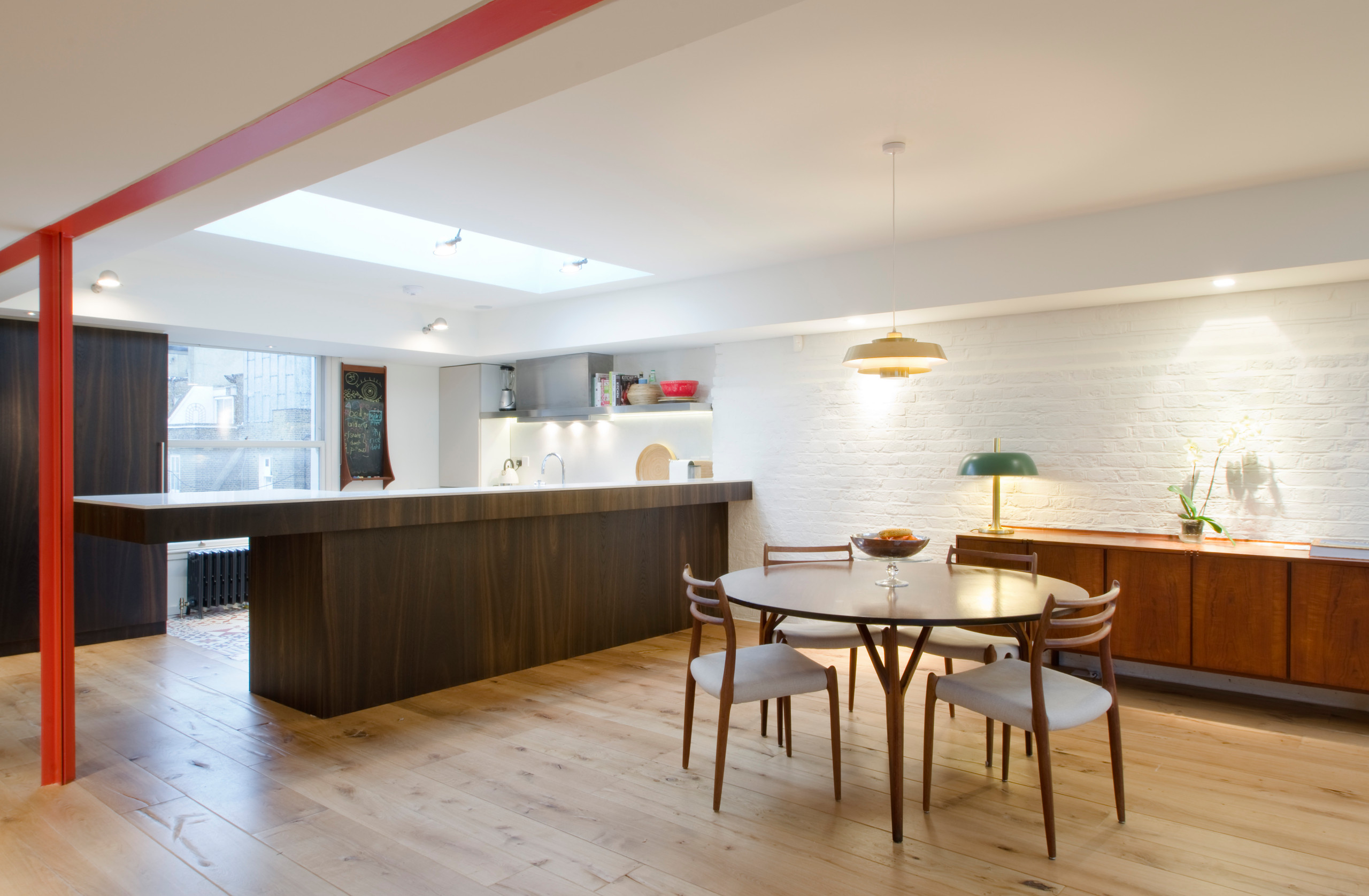 In his Essex Mews project, shown here, Wood achieved this by designing a home that consists of a winding sequence of connected areas linked by a dogleg staircase. Each area is connected, yet clearly defined.