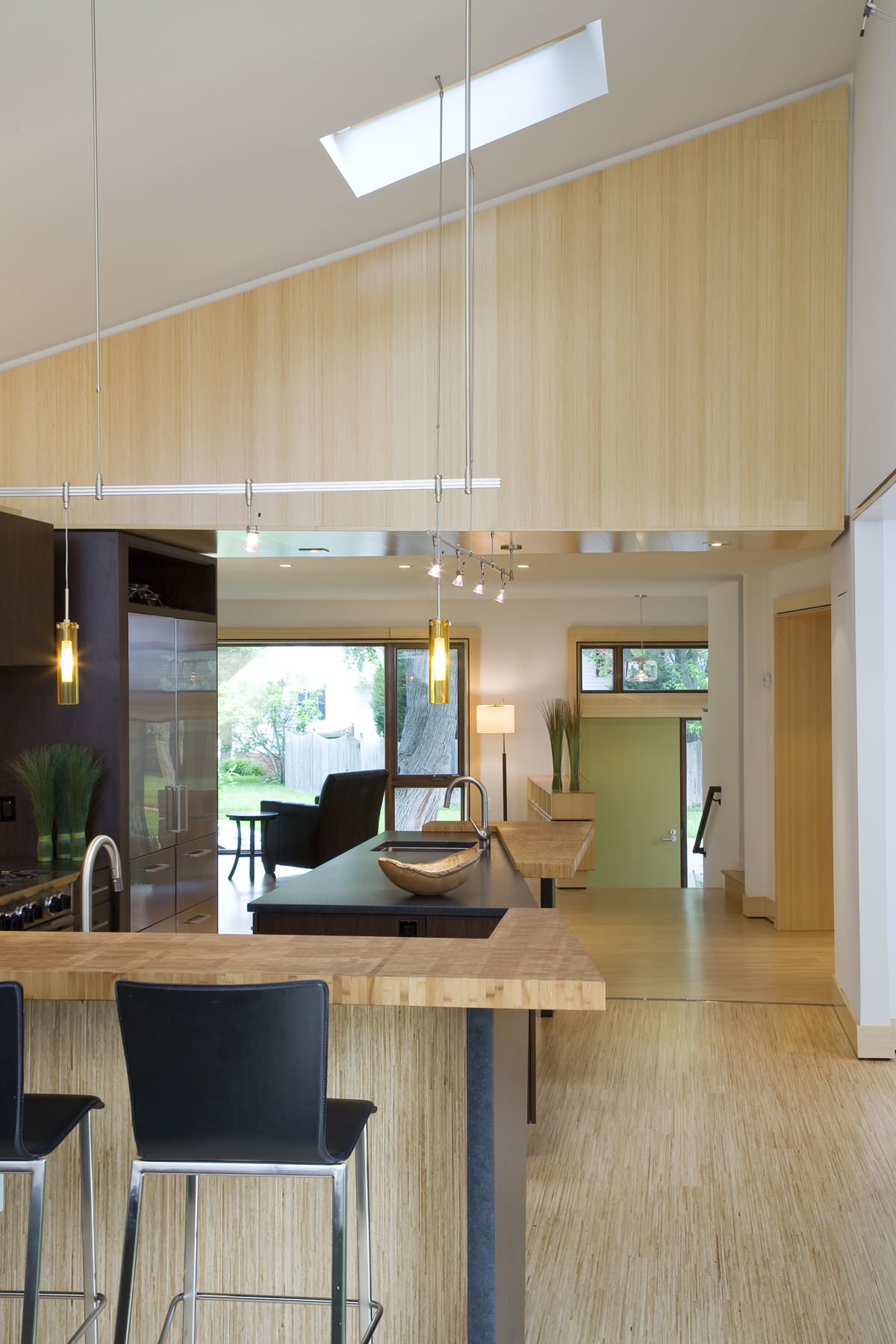 Andrea chose bamboo for her own home partly because of the distinct colour of the material. “I liked how it would look once faded from the sun [to a lighter yellow],” she says. “It worked for my aesthetic, which was Scandinavian modern.”