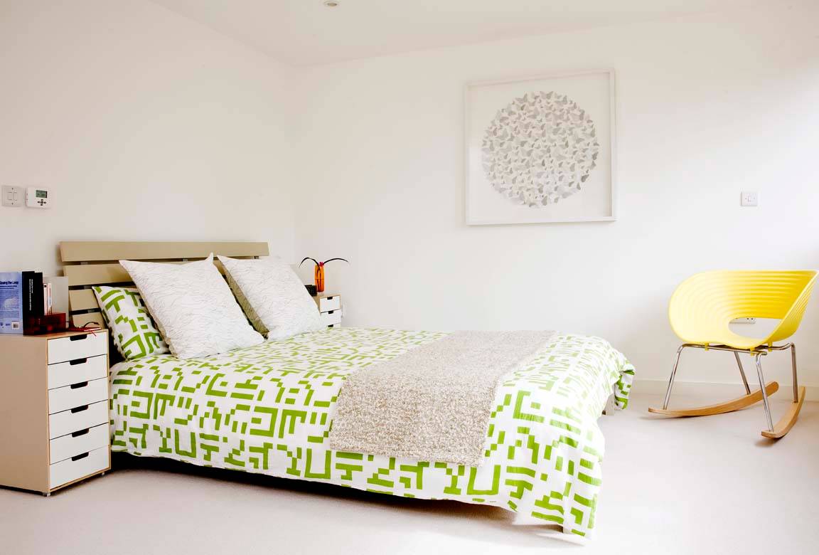 If you don’t want to commit to green, you can dip in and out of the colour by swapping and changing your bedding and accessories. This graphic leaf green and white duvet cover creates the most invigorating partnership with the zesty lemon chair. And if you get bored with the look, simply throw on another cover.