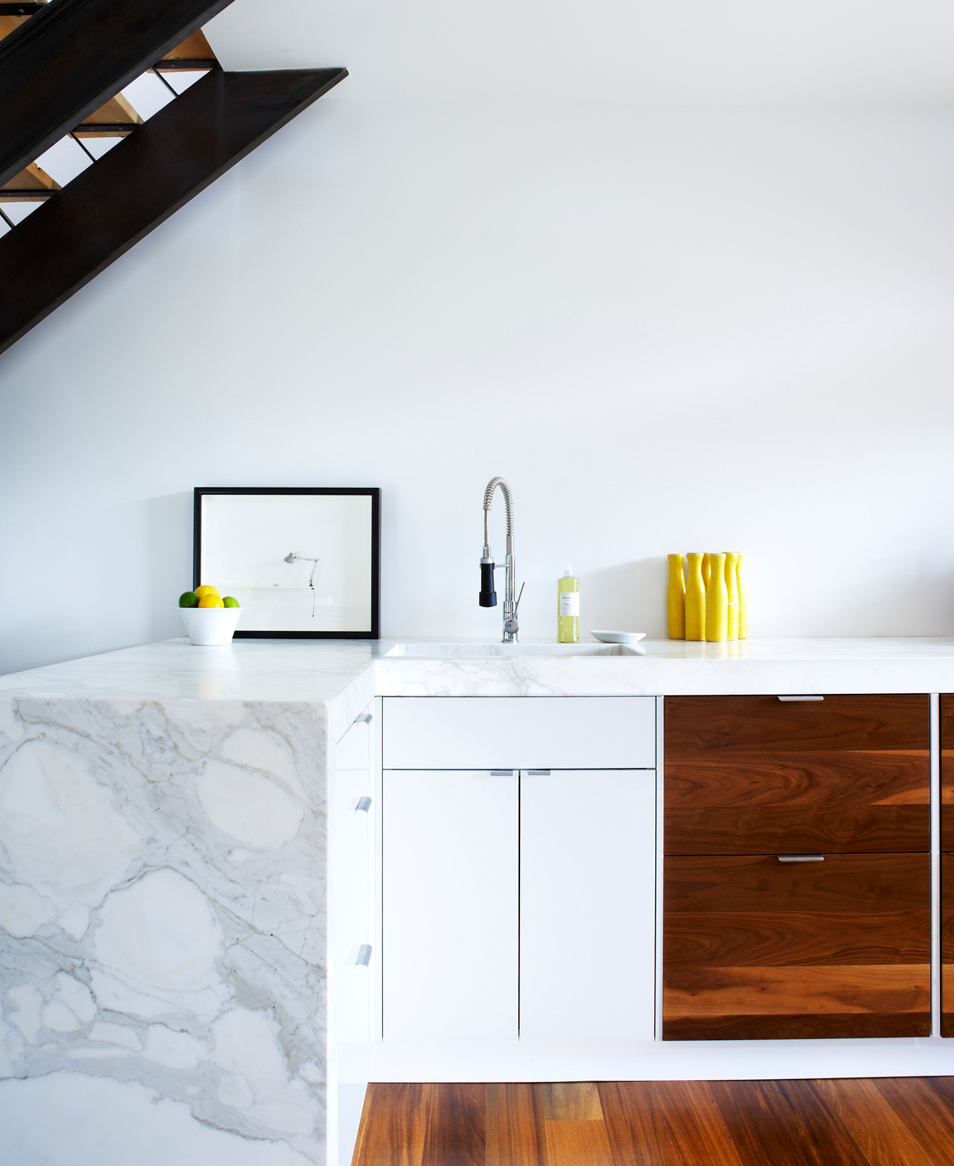 Alternatively, a grouping of yellow can work the Midas touch, too. Keep the effects small (as seen here, even a bottle of handwash can add design clout) and pair with a gleaming white background for maximum impact.