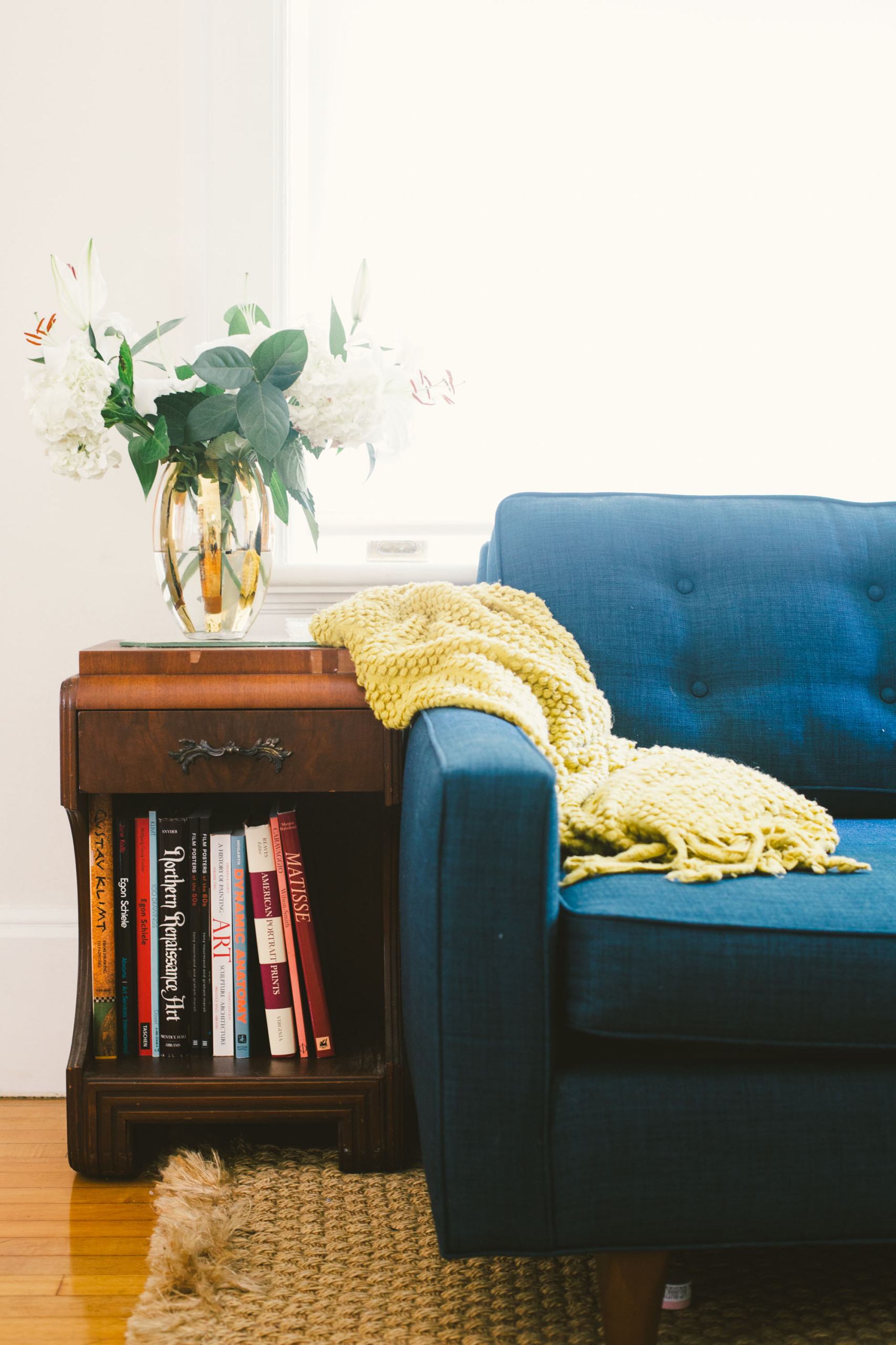 It’s no secret blue and yellow work as a successful duo, but rather than painting the town blue and yellow (if you will), why not simply accent it? This blue sofa was just another ordinary number until the textured yellow throw entered the picture. Like a sailing boat on the sea, a splash of sandy yellow is all you need to create a room ready to be dived into.