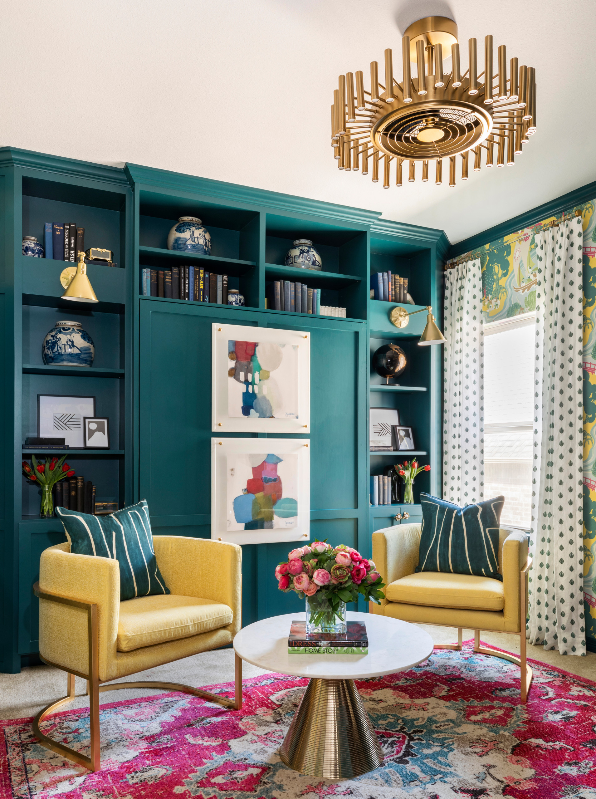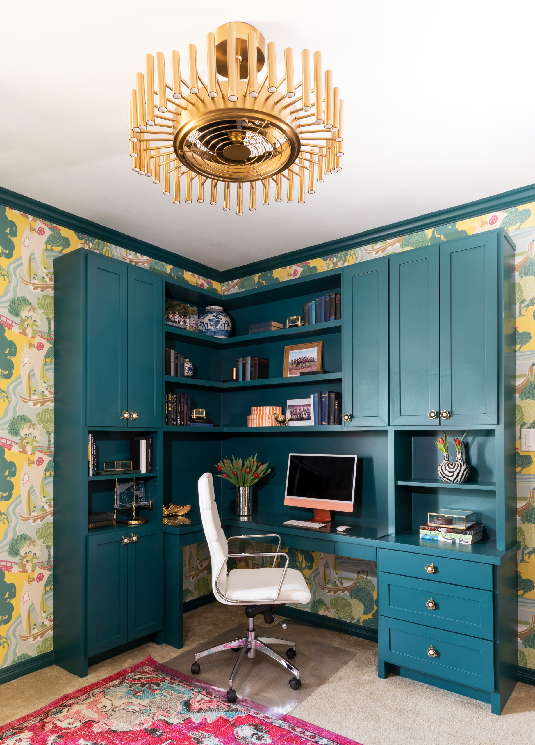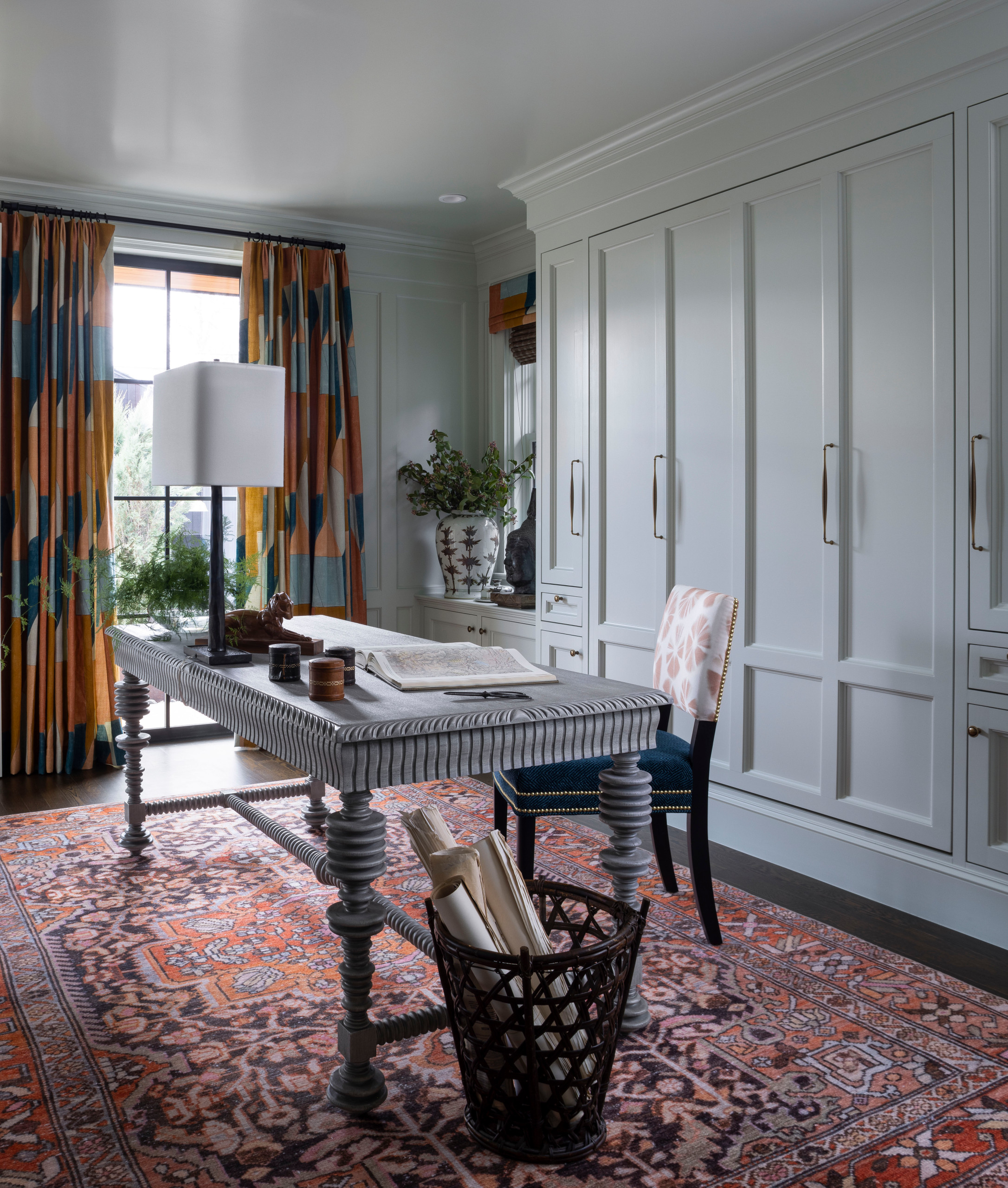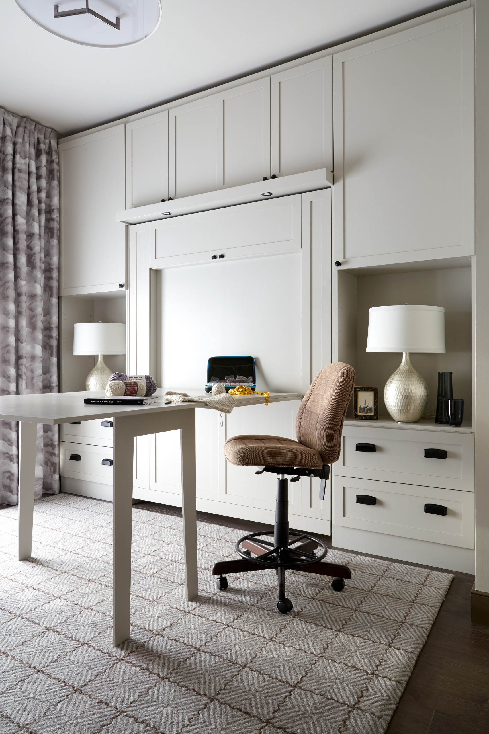 Floor-to-ceiling units, meanwhile, provide lots of storage for craft and office supplies.