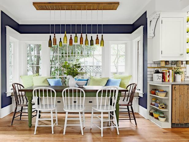 So, now that we know what to do with all the leftover wine corks – what about all of those bottles? Wine bottles are ideal for displaying flowers in, or use them to keep a supply of water cool in the fridge. You can even turn your empty wine bottles into a chandelier-style feature, as pictured here. I love the shutter door on the ceiling the bottles all hang from on string – it’s a simple and effective dining room feature.