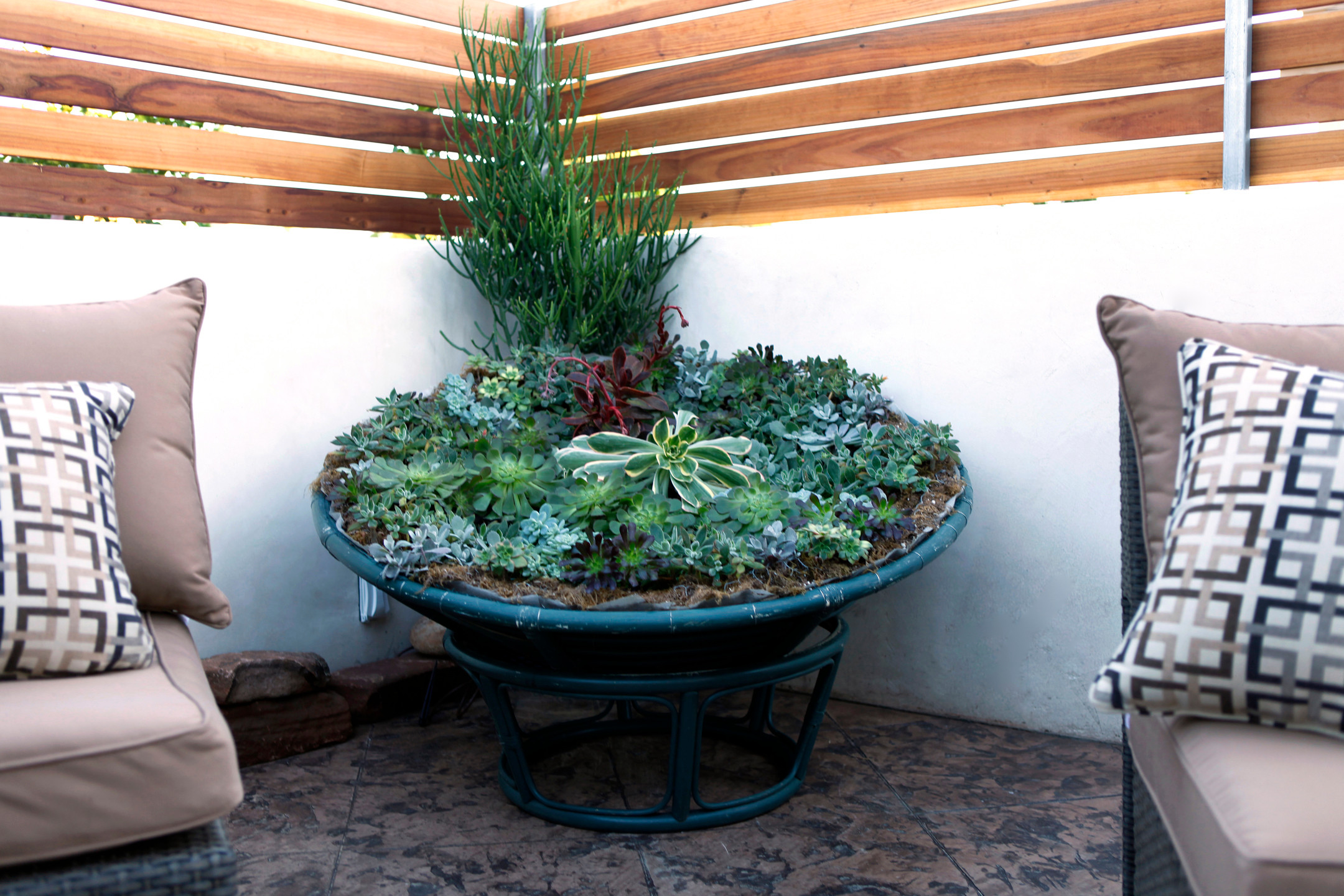 If you are bit over your papasan chair, instead of throwing it out reinvent it as an outdoor planter. Line the base of the chair with chicken wire and cover with plastic. Poke a few holes for drainage (for outside arrangements, of course), fill with soil and plant away! A mixture of succulents or herbs can look amazing.