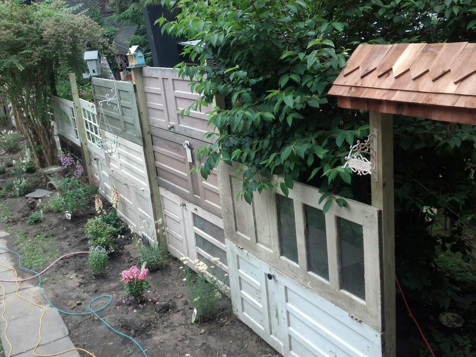 Turn old doors into an eye- catching outdoor wall. Stacking the doors horizontally provides a unique feature wall that is guaranteed to be a talking point when friends drop by.