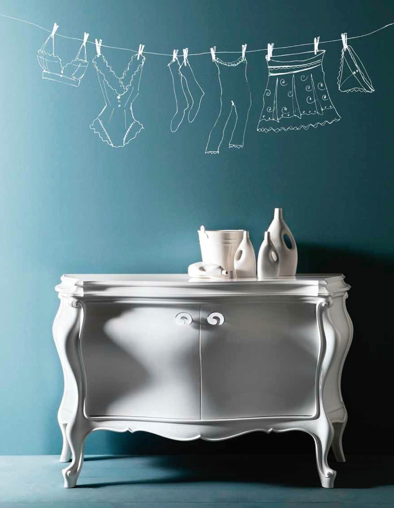 Keep things fresh with a regularly changing display, chalked up in your own fair hand. Chalkboard paint is available in a range of colours and allows you to create a new image on your chosen wall every day – or at least change the washing on the line.