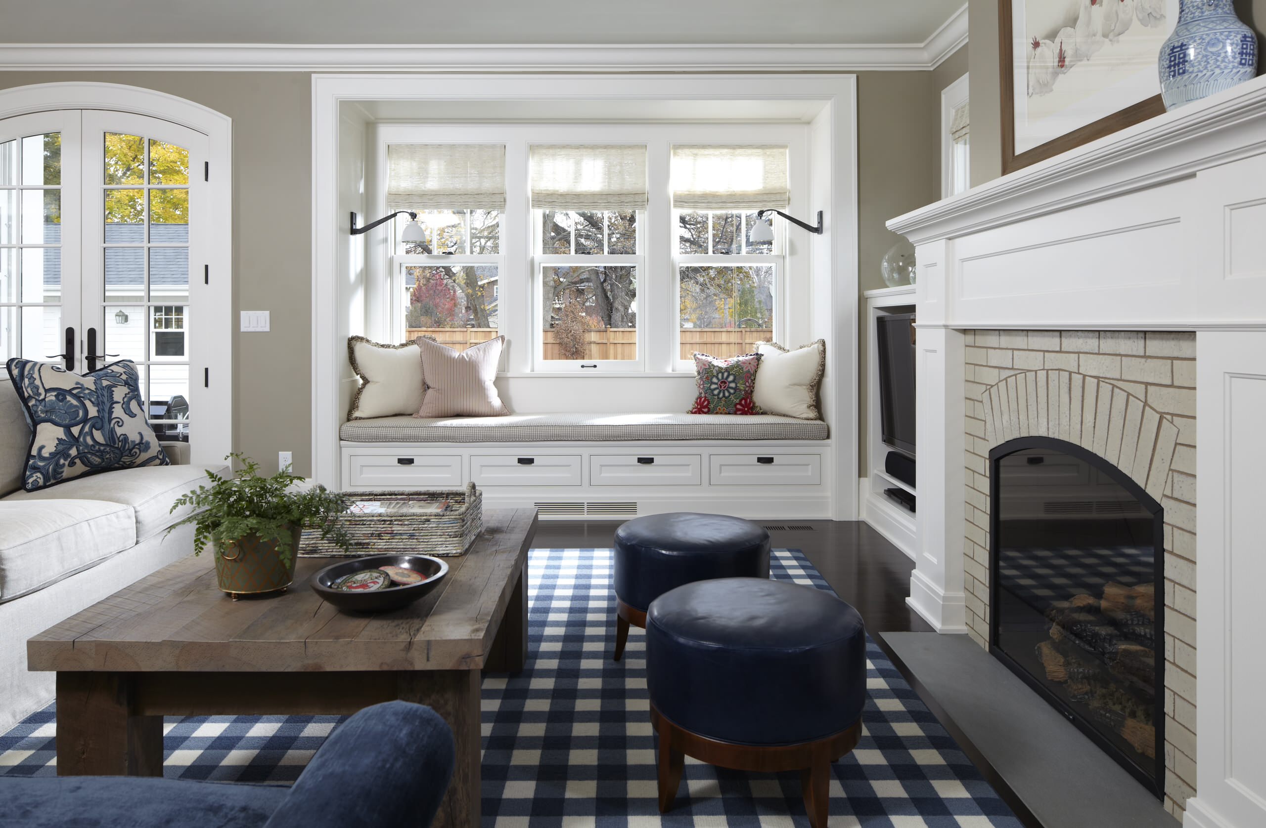 Soft blanket: check. Plump cushions: check. Table (so you don’t have to reach down too far for your cup or glass): check. This elegant window seat has comfort and style nailed.