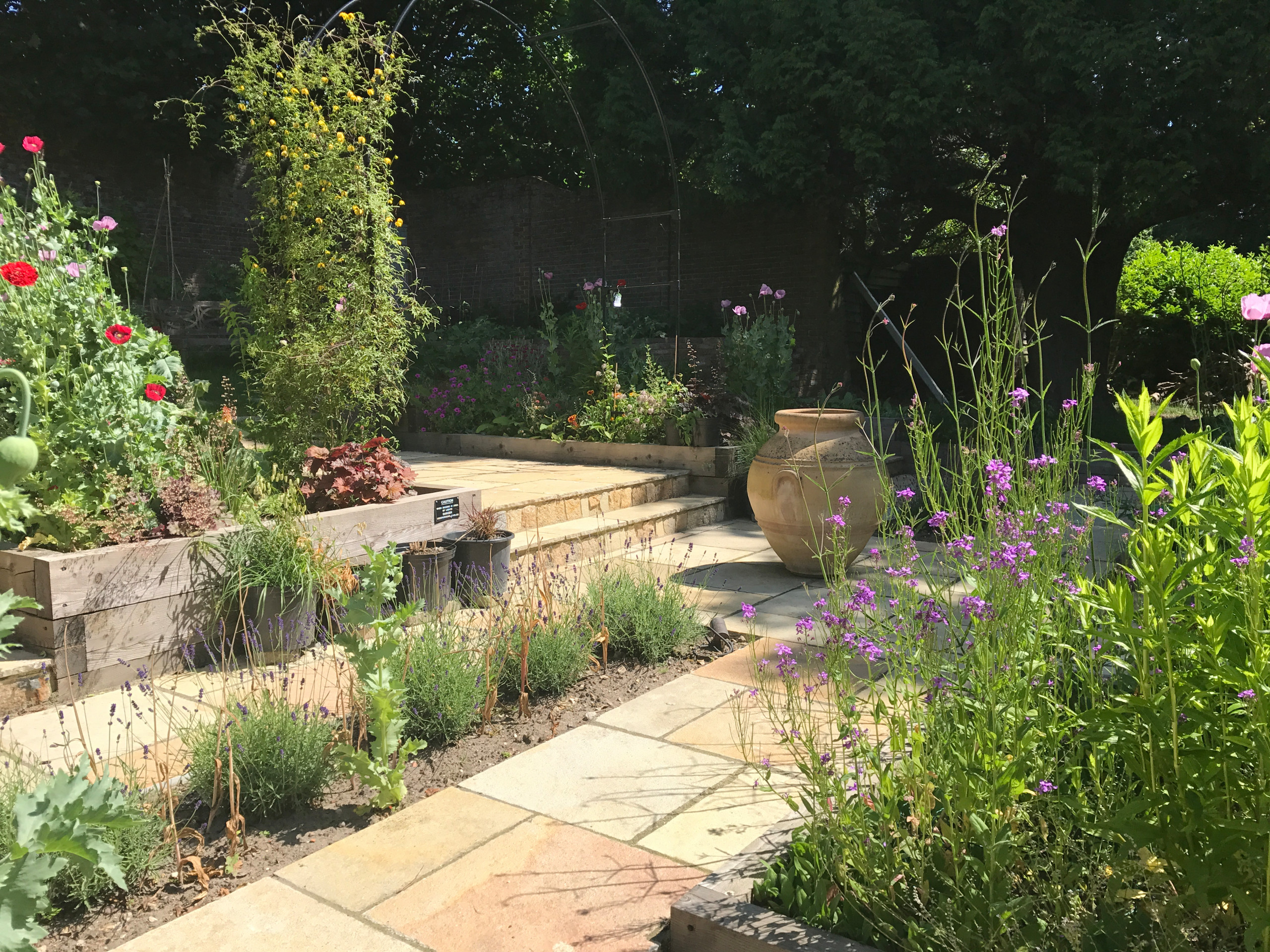 The purple flowers growing at the top are a salvia – Perovskia ‘Blue Spire’.