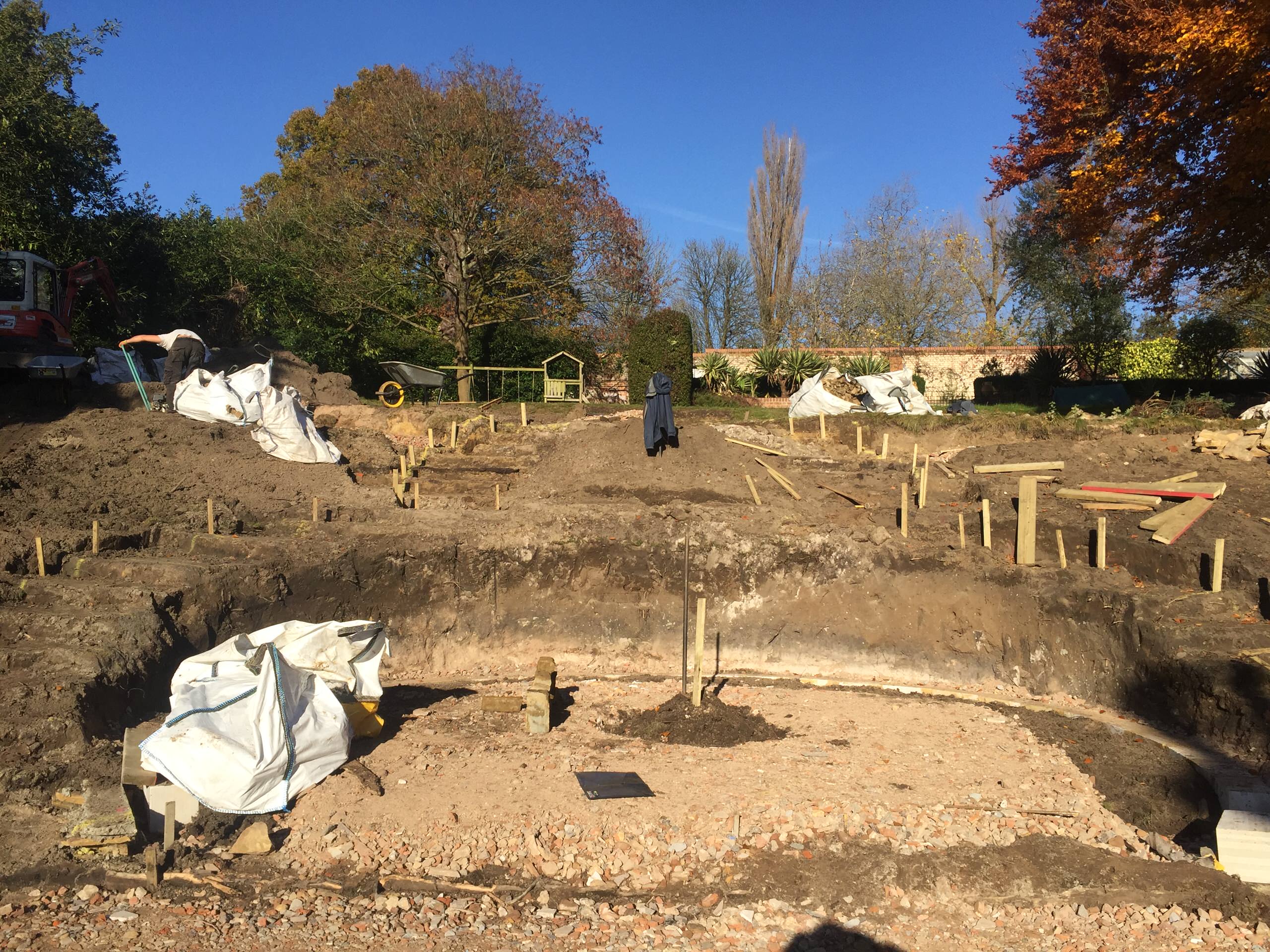 This photo shows work underway on the dry stone wall garden.