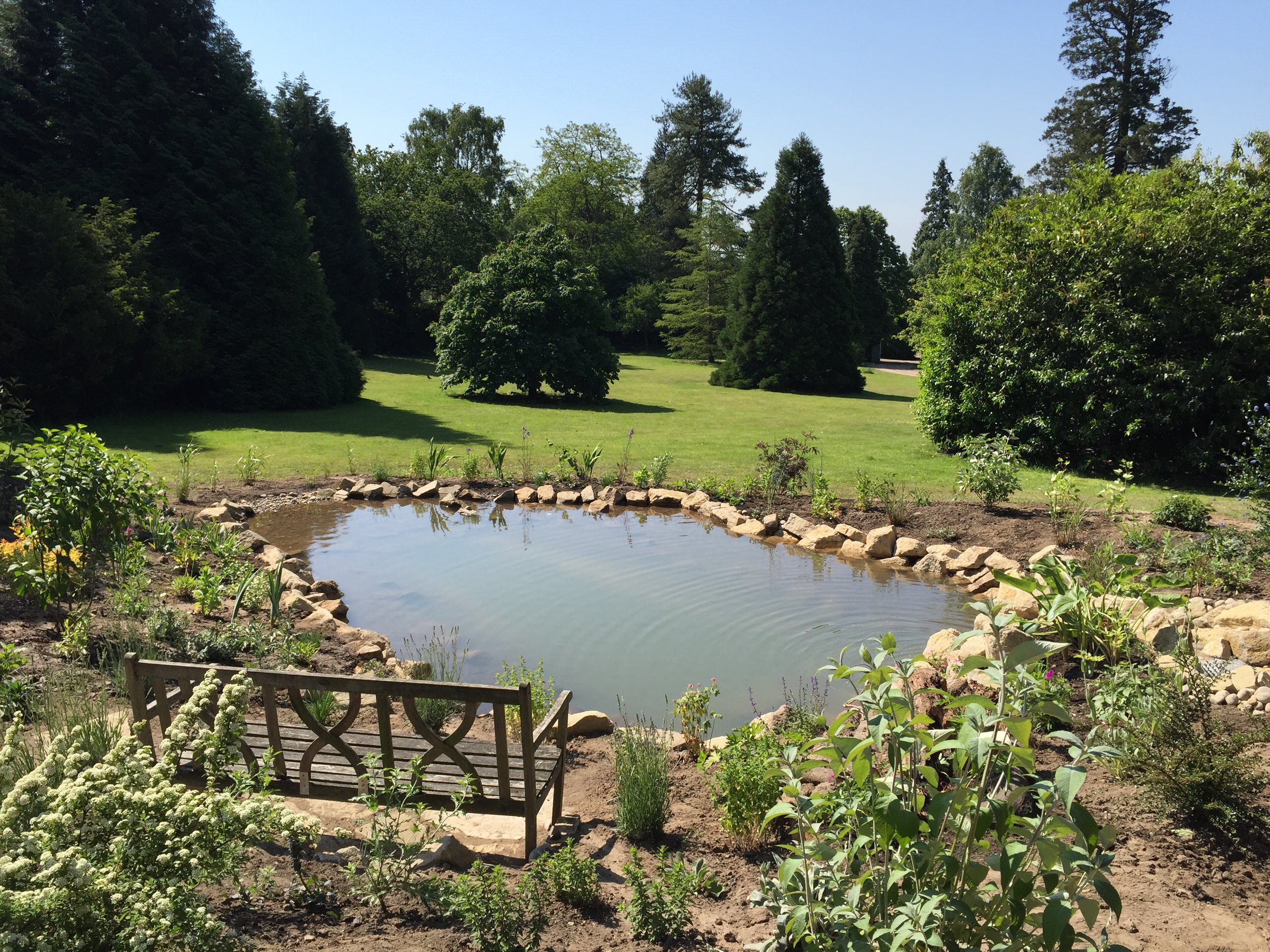 Another shot of the pond when it was newly completed, looking towards the bench seating.