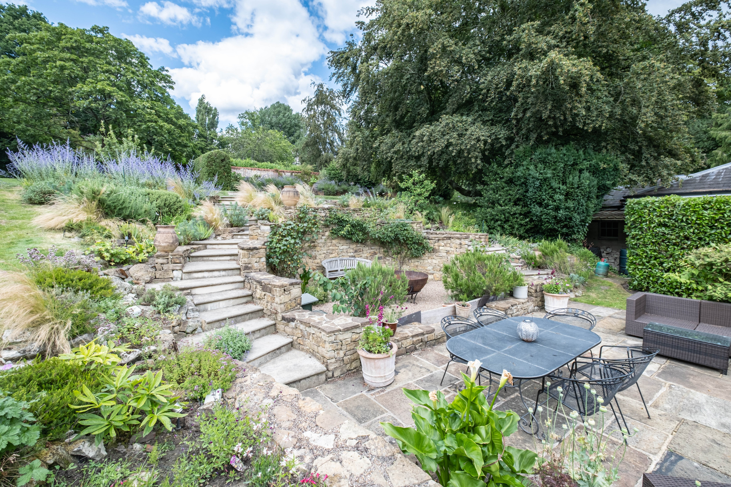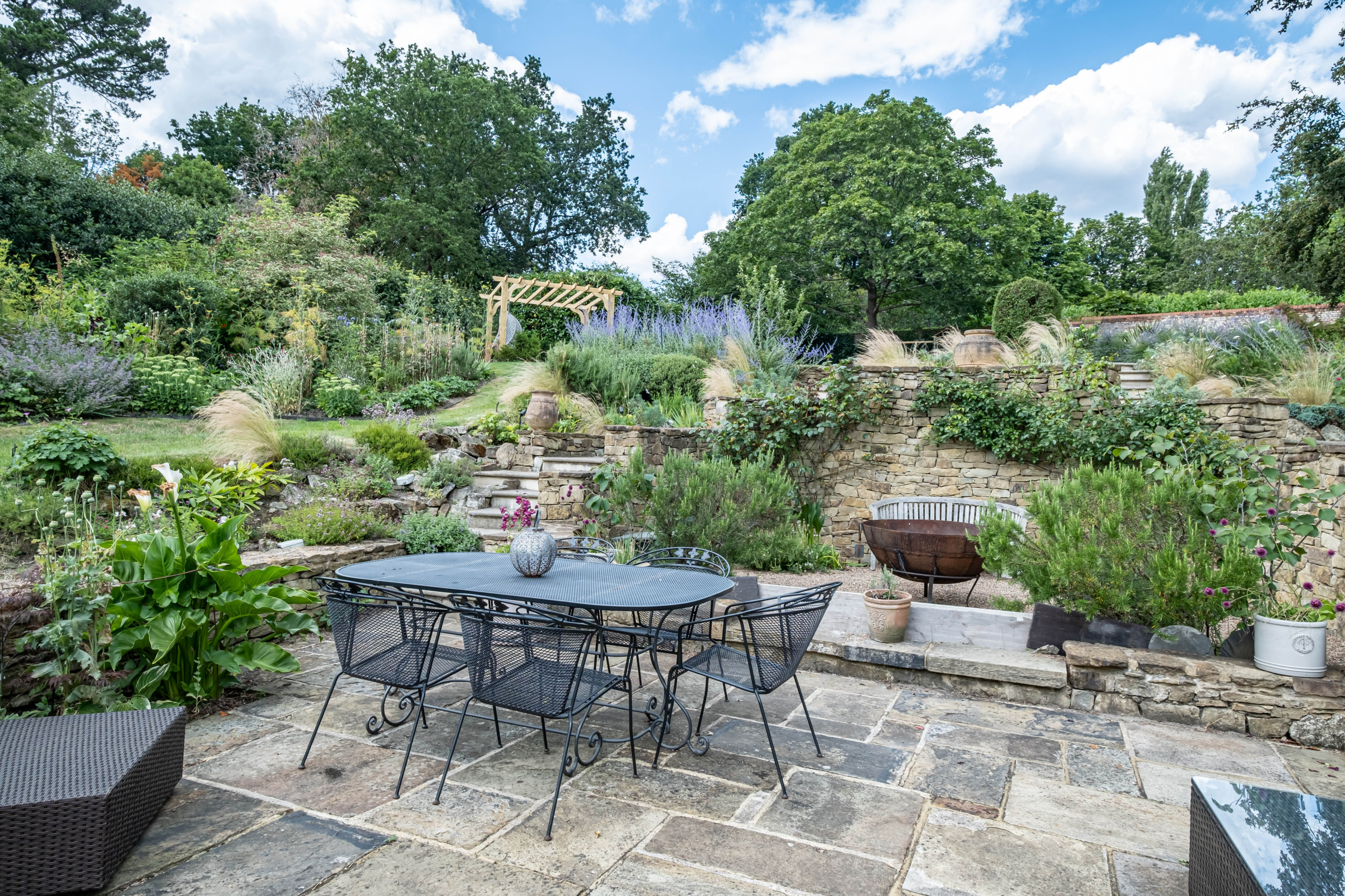 The second phase of work was the terrace garden. “You can see it as soon as you come onto the driveway,” Kenn says, “so we wanted to create a focal point from the bottom of the drive.”