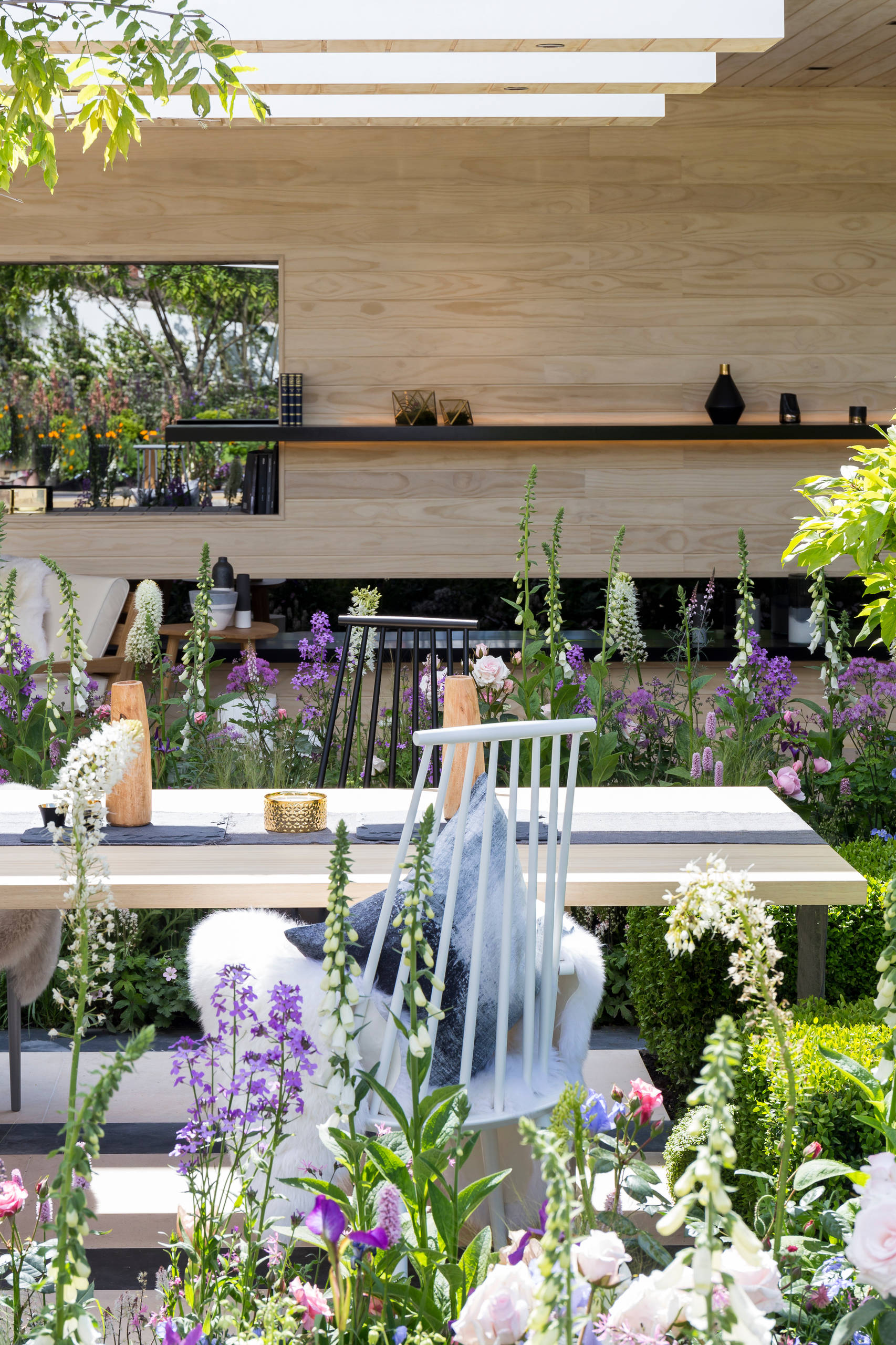 This show garden at the RHS Chelsea Flower Show 2016 blends contemporary décor with traditional planting to glorious effect