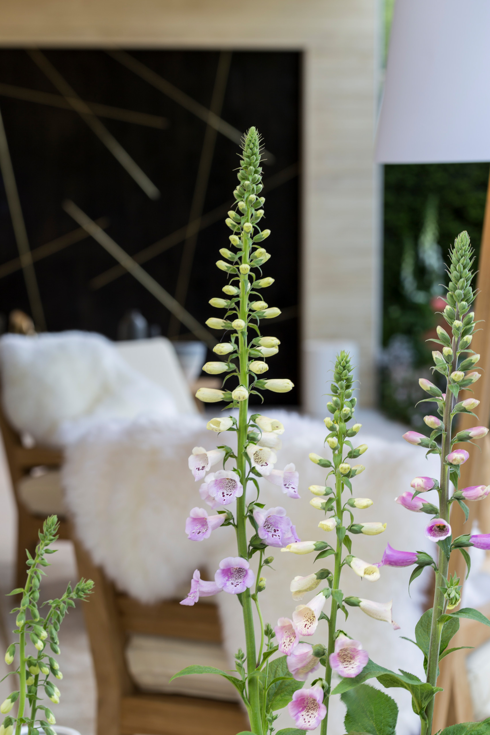 Tall Digitalis ‘purpurea alba’ surround the outdoor room, providing a soft screen.
