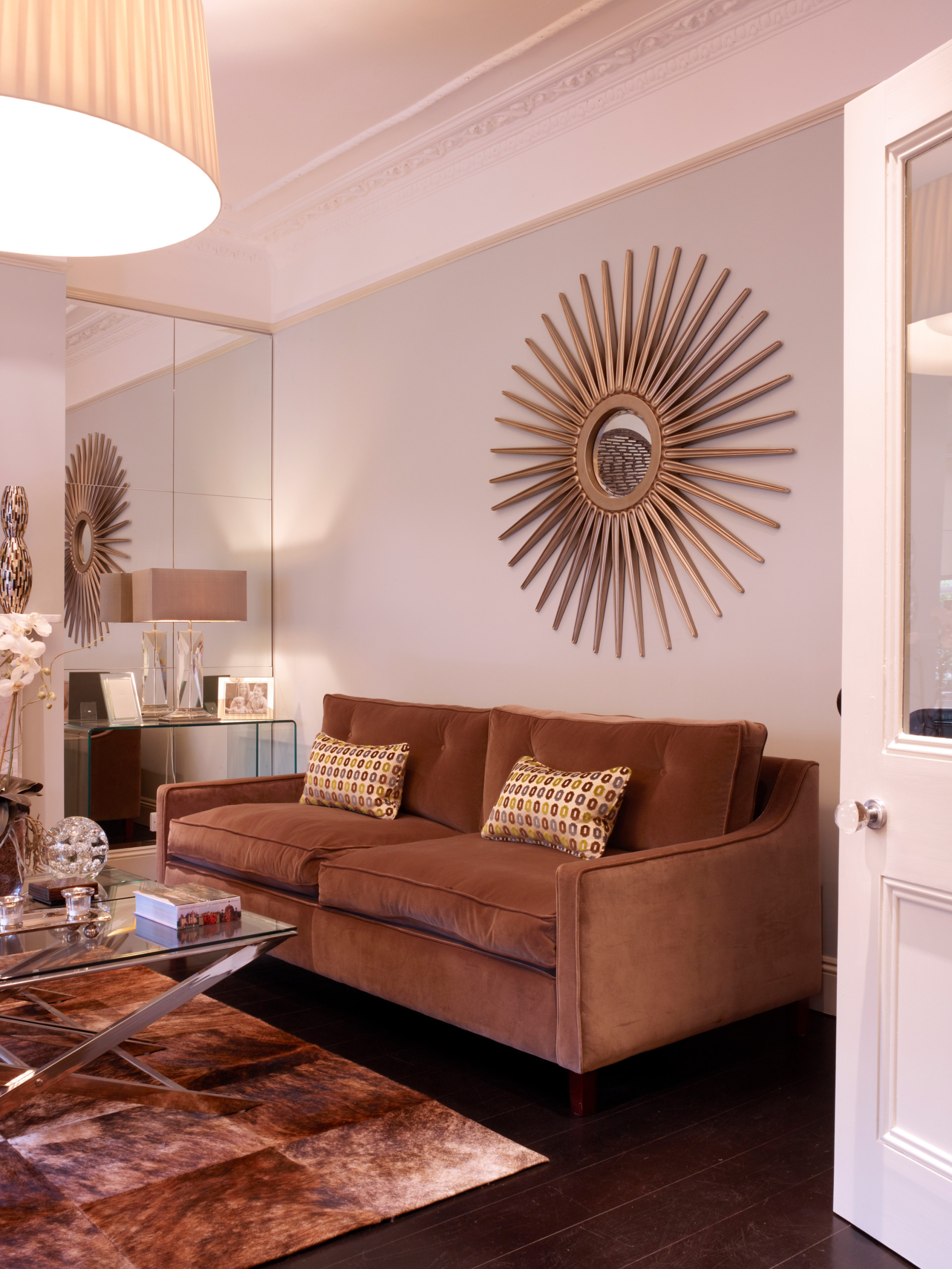 The sunburst mirror is a classic Art Deco nature motif and radiates elegance and optimism. Make sure you echo this with reflective surfaces elsewhere, too, such as mirrored alcoves and a glass-topped coffee table.