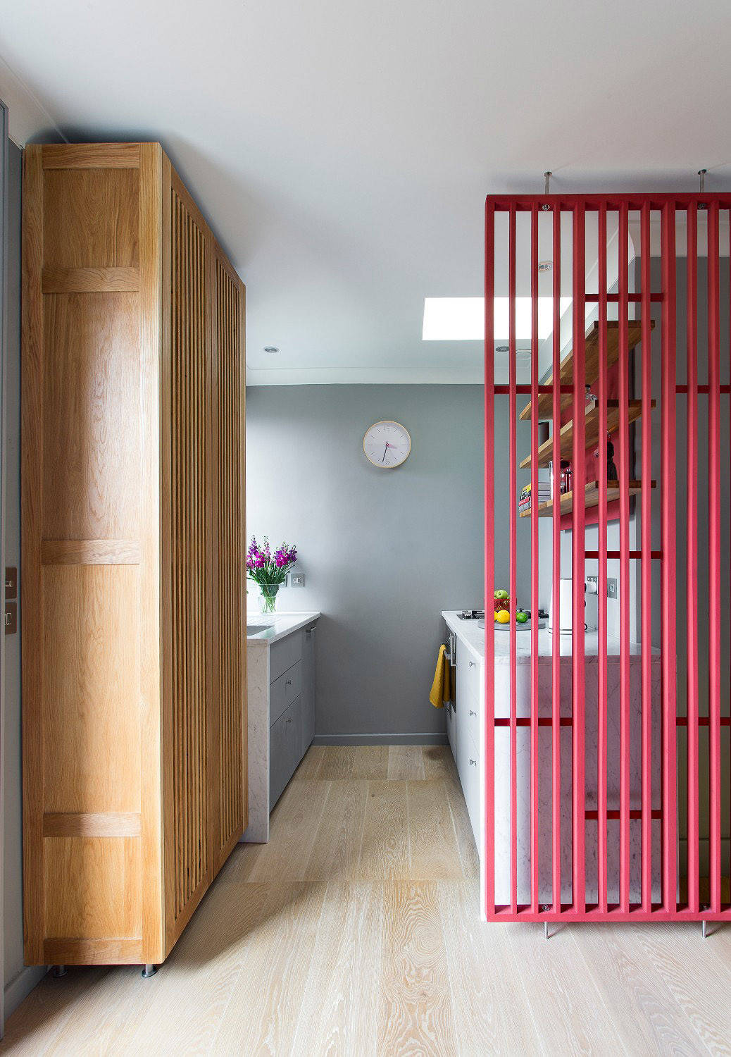 The door itself, leading from the communal stairwell, was painted to provide a flare of bright colour.
