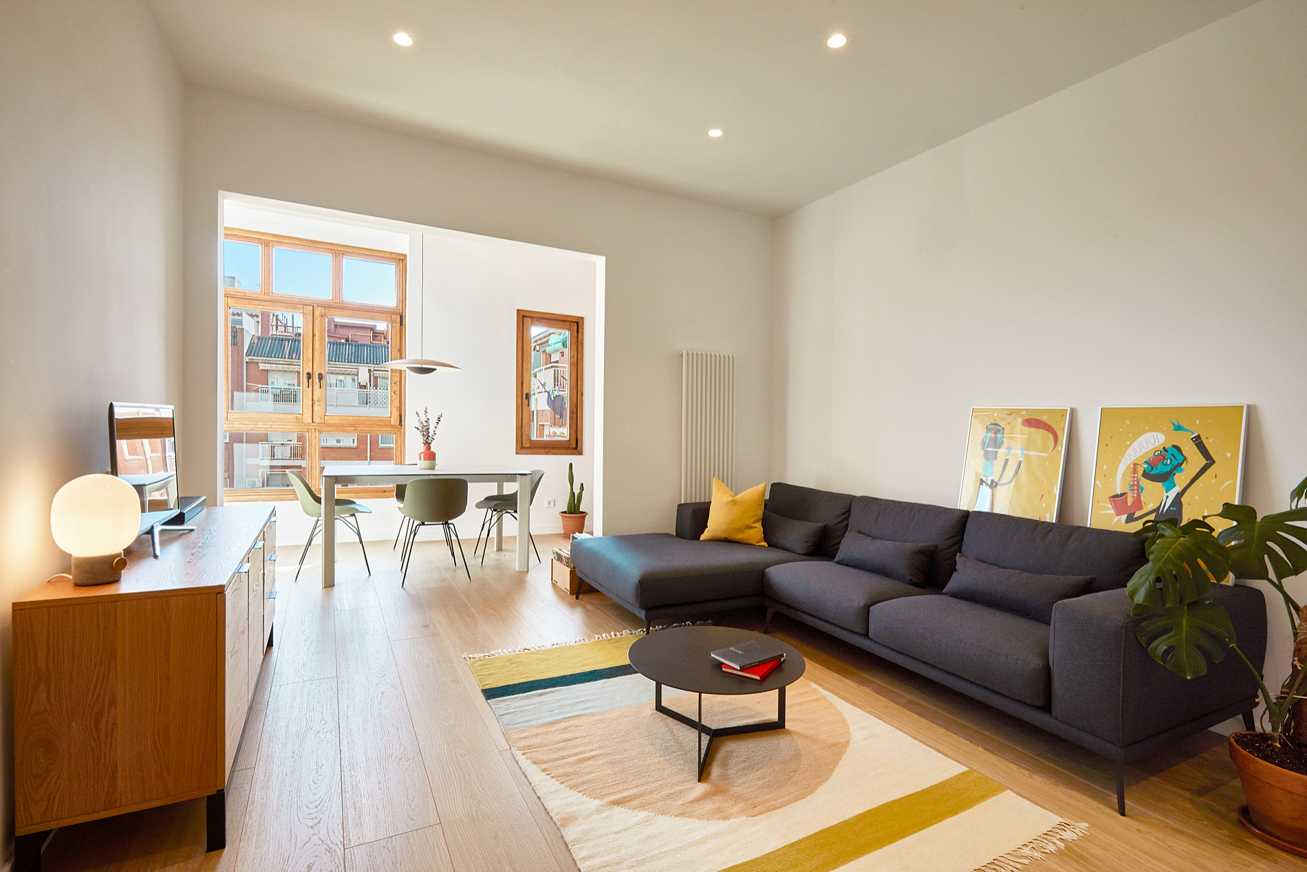 The first thing that stands out in the living room is the large, open space and the light colour of the oak floor. “The new floor helps to create uniform lighting and also provides a very Mediterranean chiaroscuro feeling,” Genís says.