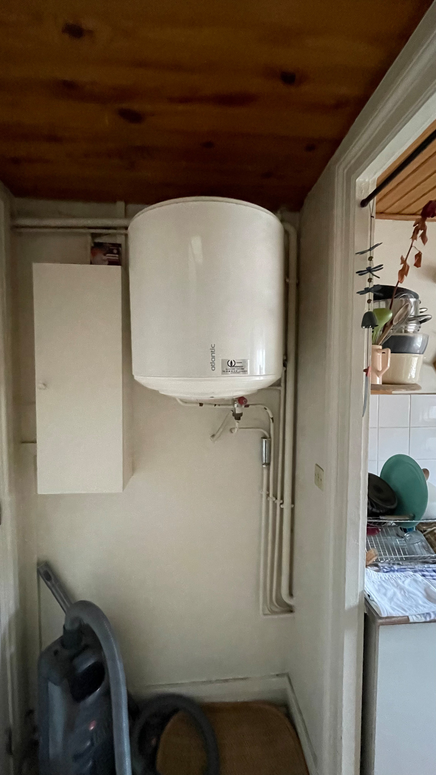An extra-flat, 80 litre tank, which is easier to store than the old one, occupies the right-hand side of the cloakroom. “Underneath, we’ve placed the lift pump needed to evacuate the waste water,” Alicia says.
