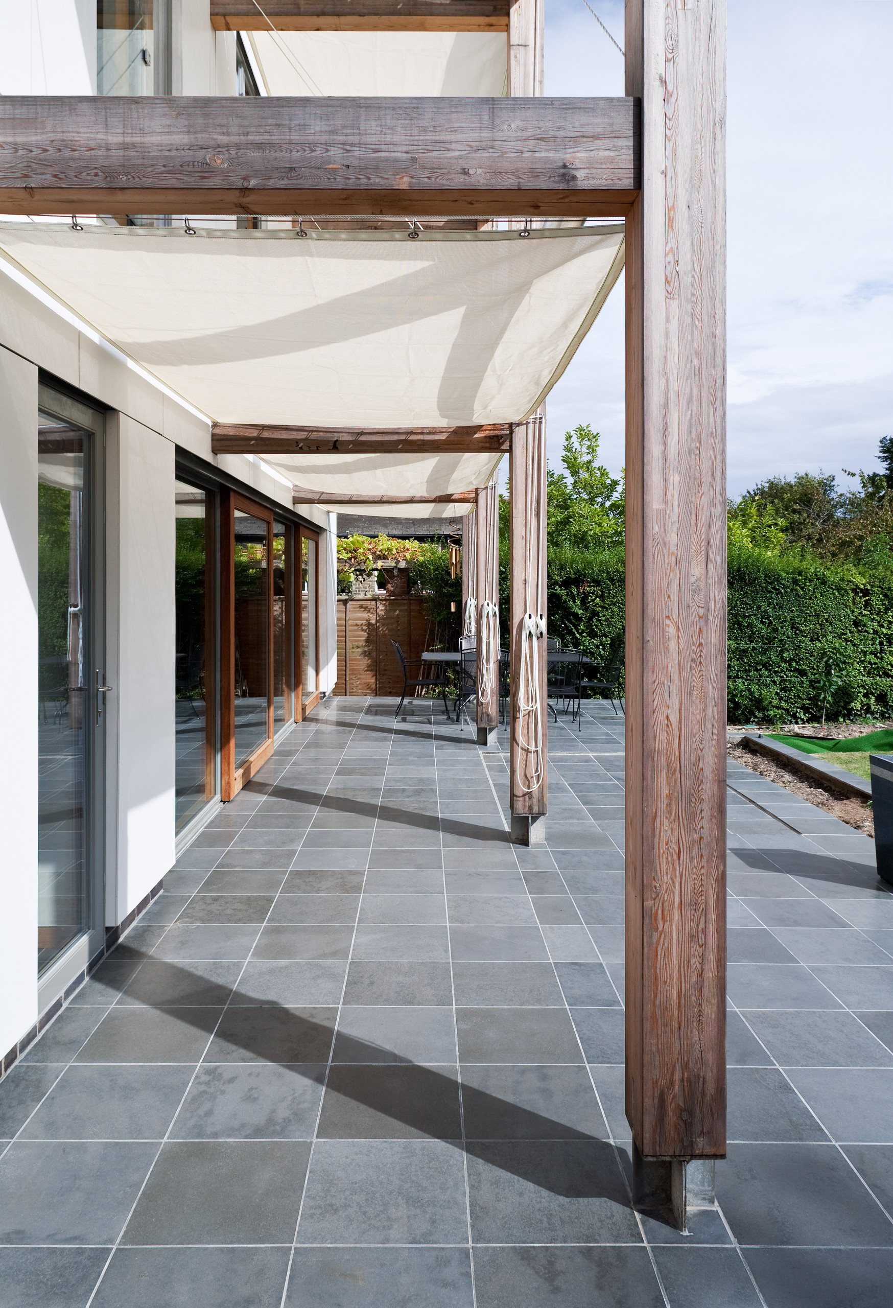 This suggestion of Sam’s is a structure you may have seen, especially on very modern buildings. As you can see, a brise-soleil consists of a section of slats projecting out at roof height and bringing dappled shade to the interior of the space.