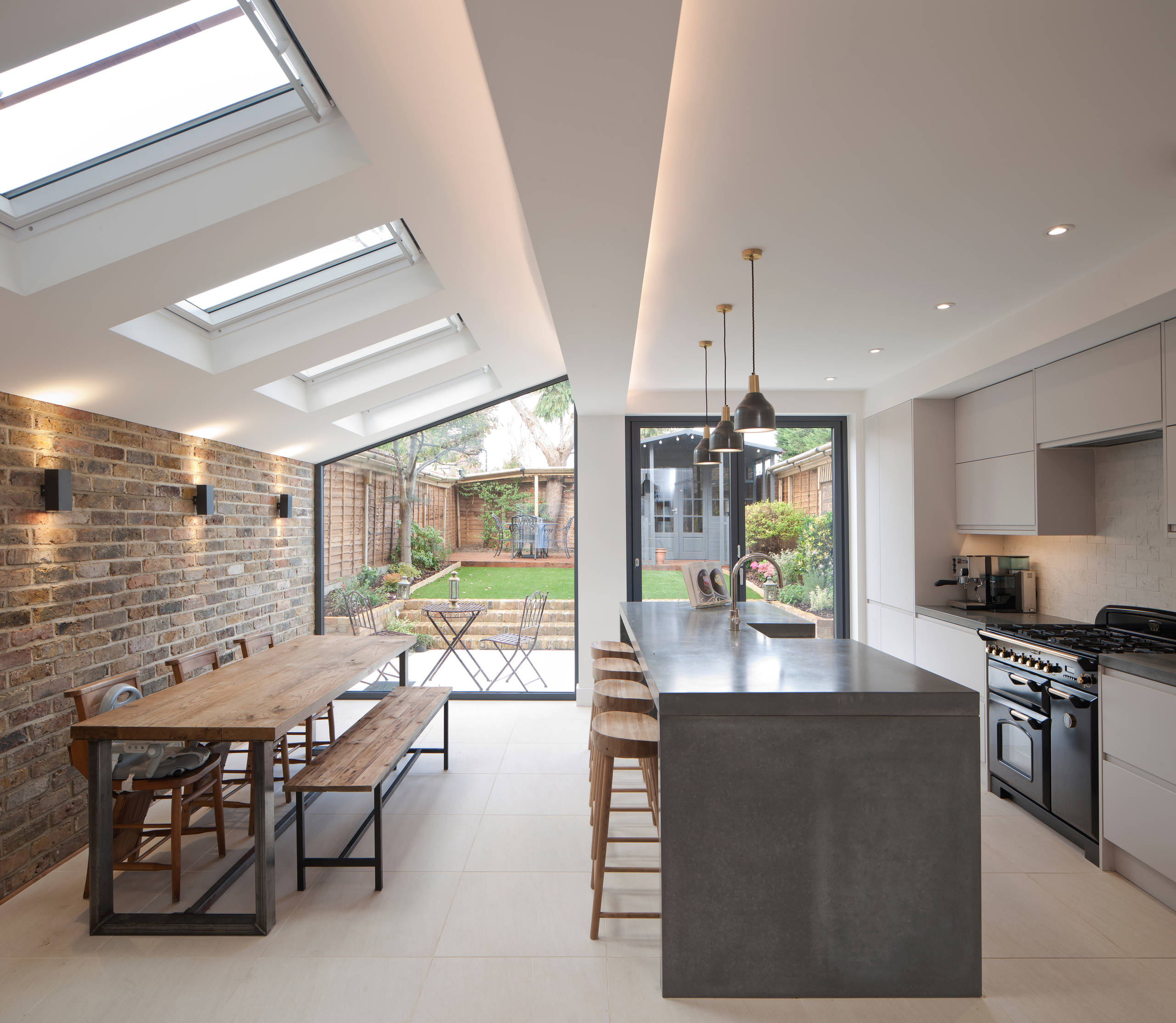 “It’s also about visual comfort,” he continues. “If you’re walking from the darker middle of the house into an extremely bright extension, you could get sun-blinded.”