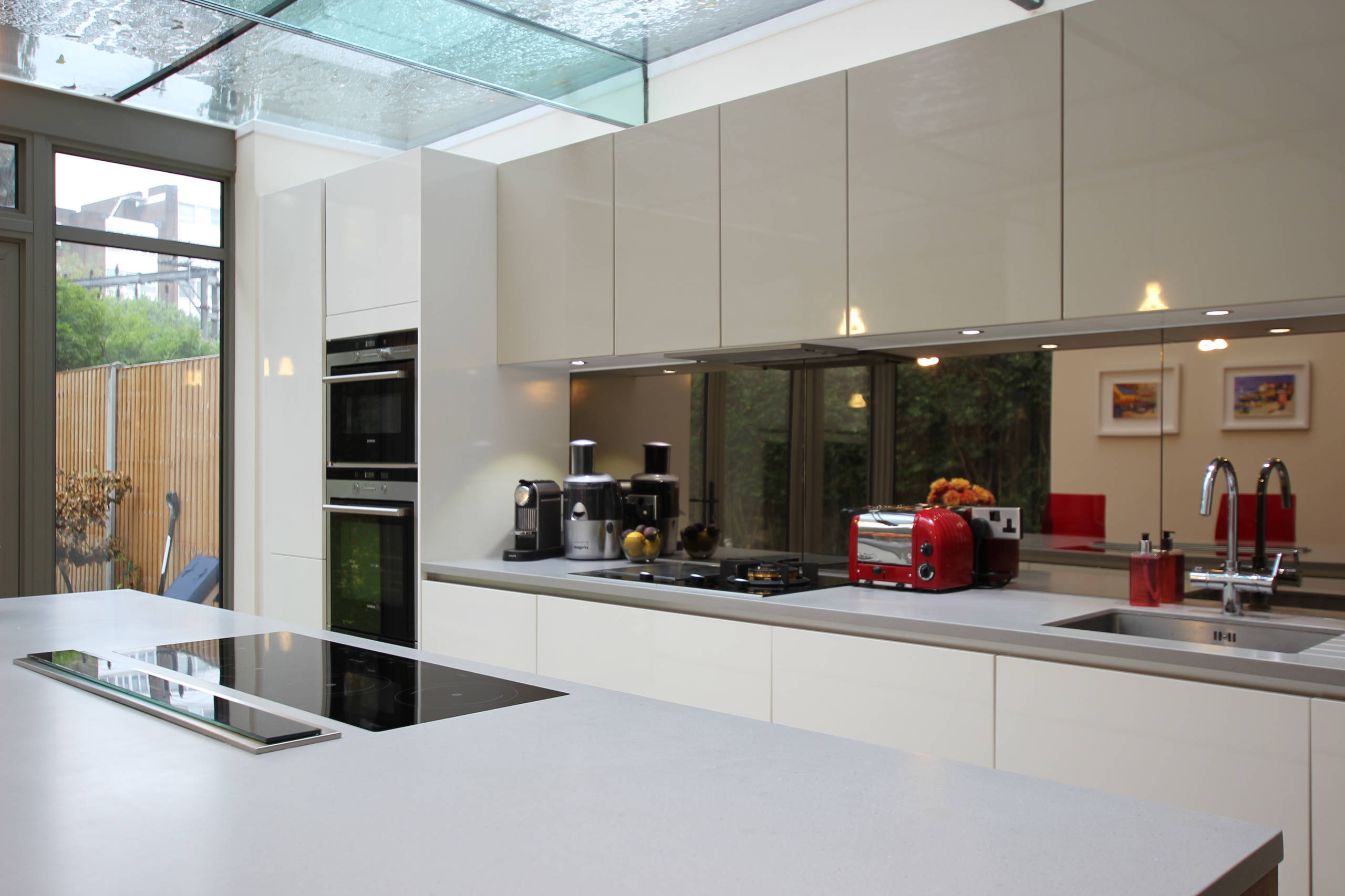 Cons Mirrored splashbacks can’t be used behind a gas hob because continuous expansion and contraction of tempered glass created by an open flame can, over time, cause visible cracks to form behind the glass, cautions Conrad. ‘Although easy to clean, mirrored glass needs a regular polish, because marks show up easily,’ he adds.